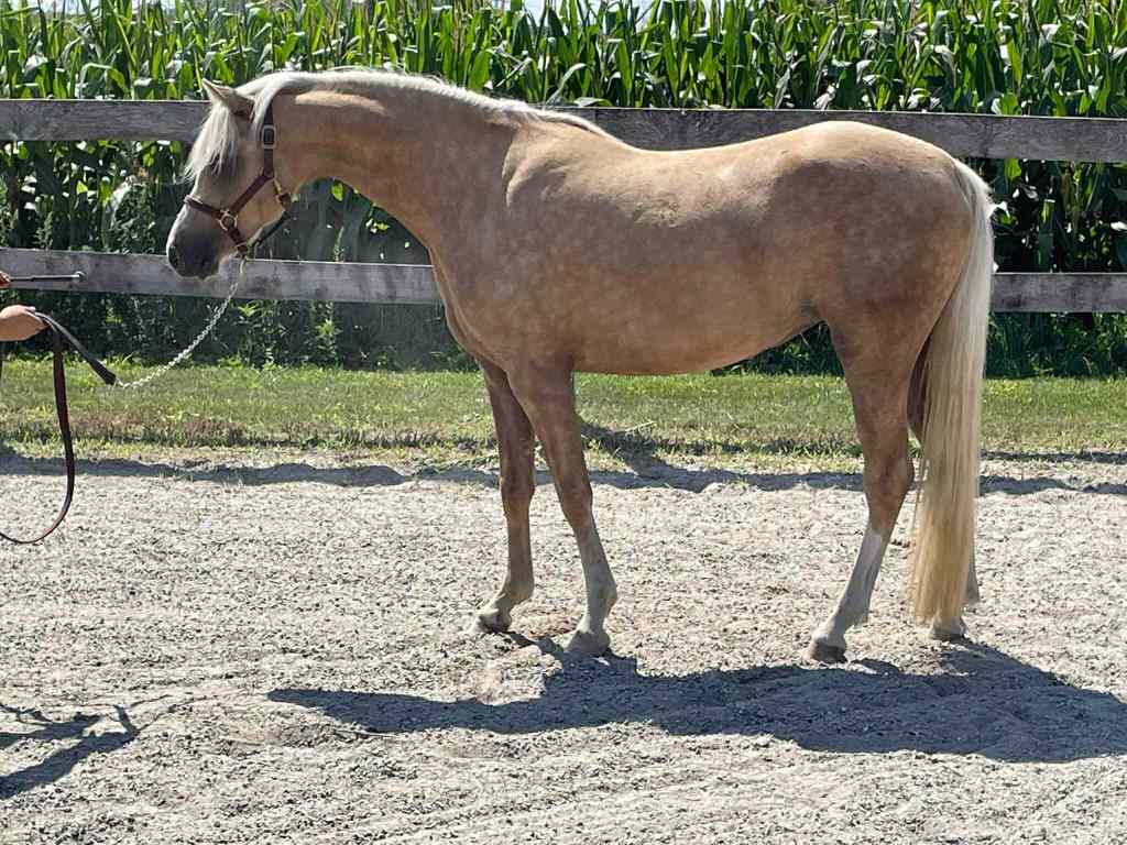 Goose is a ready for his next winning home! With an extensive record already, this is your future pony hunter winner. Goose has brought home first place and champion ribbons in Devon as well as at the Royal Winter Fair. Exceptionally bred pony with a huge flashy trot, gorgeous face, and great ring presence. He really is a fan favourite! Good to handle, stands for farrier, blanketing, and brushing. Up to date on everything and ready to be your next big winner. This pony is going big places!